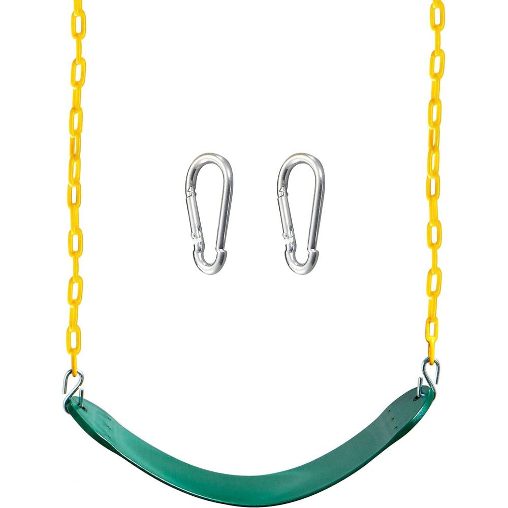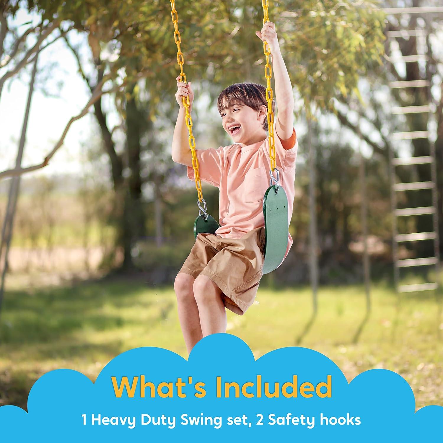 imageTURFEE Heavy Duty Swing Seat Green Color with 66 Chain Swing Set Accessories Replacement with Snap Hooks for Kids Outdoor Play PlaygroundGreen