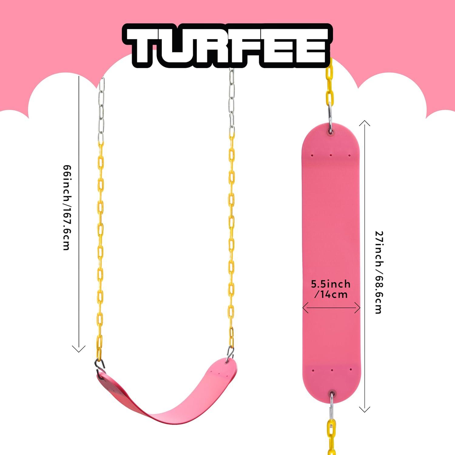 COMPREHENSIVE SET. Our Playset Attachments includes one swing and 2 hooks, the swing is two zinc-plated chains of Swingset (66″ long each), 30″ of which is covered with thermoplastic with a 27 inch x 5.5 inch swing board